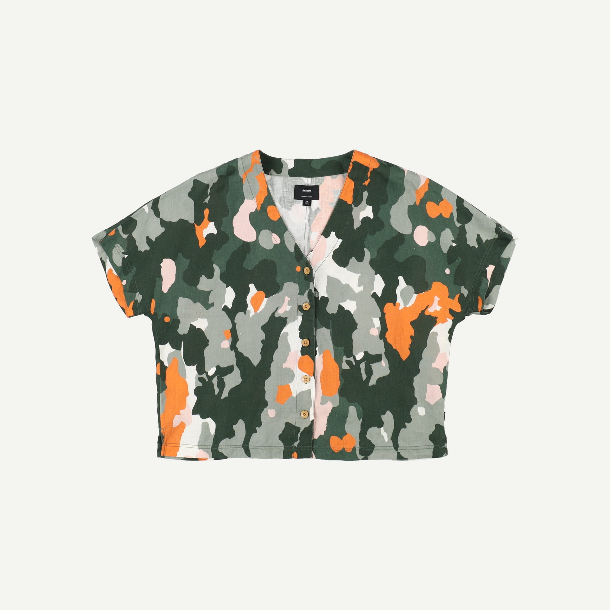 Finisterre Womens Green Linen Short sleeved Top Size 12