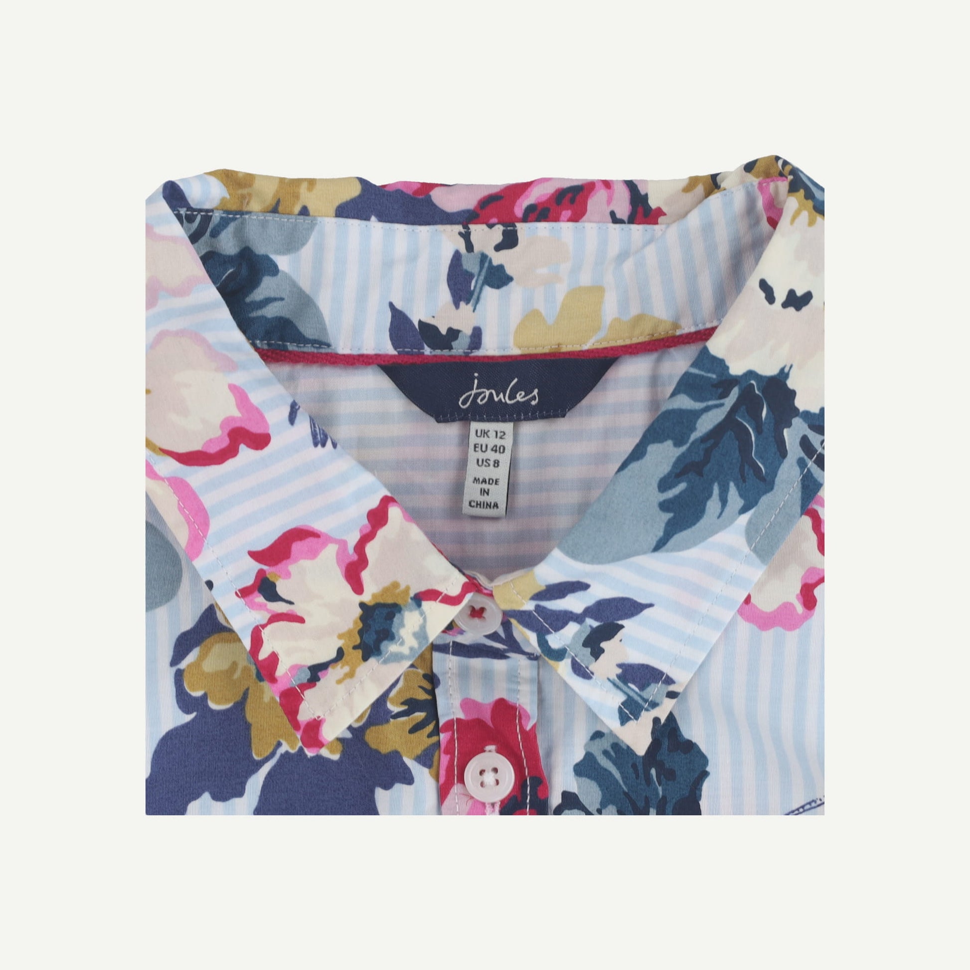 Joules Womens Multi Coloured Cotton Striped floral Long sleeved Blouse 36" 12