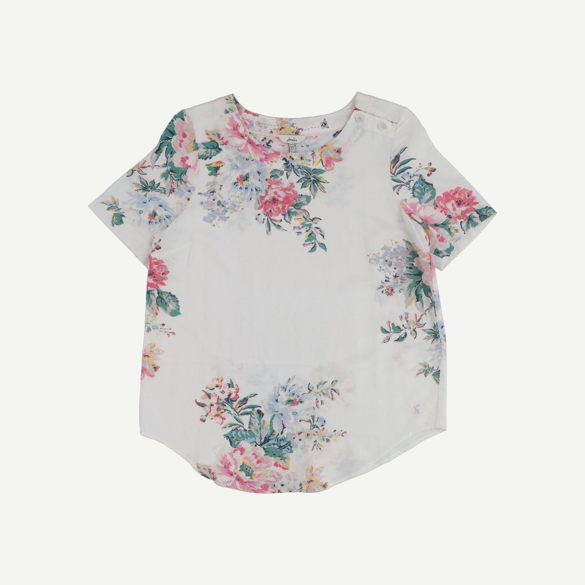 Joules Womens White Viscose blend Floral Short sleeved Top 34" 10