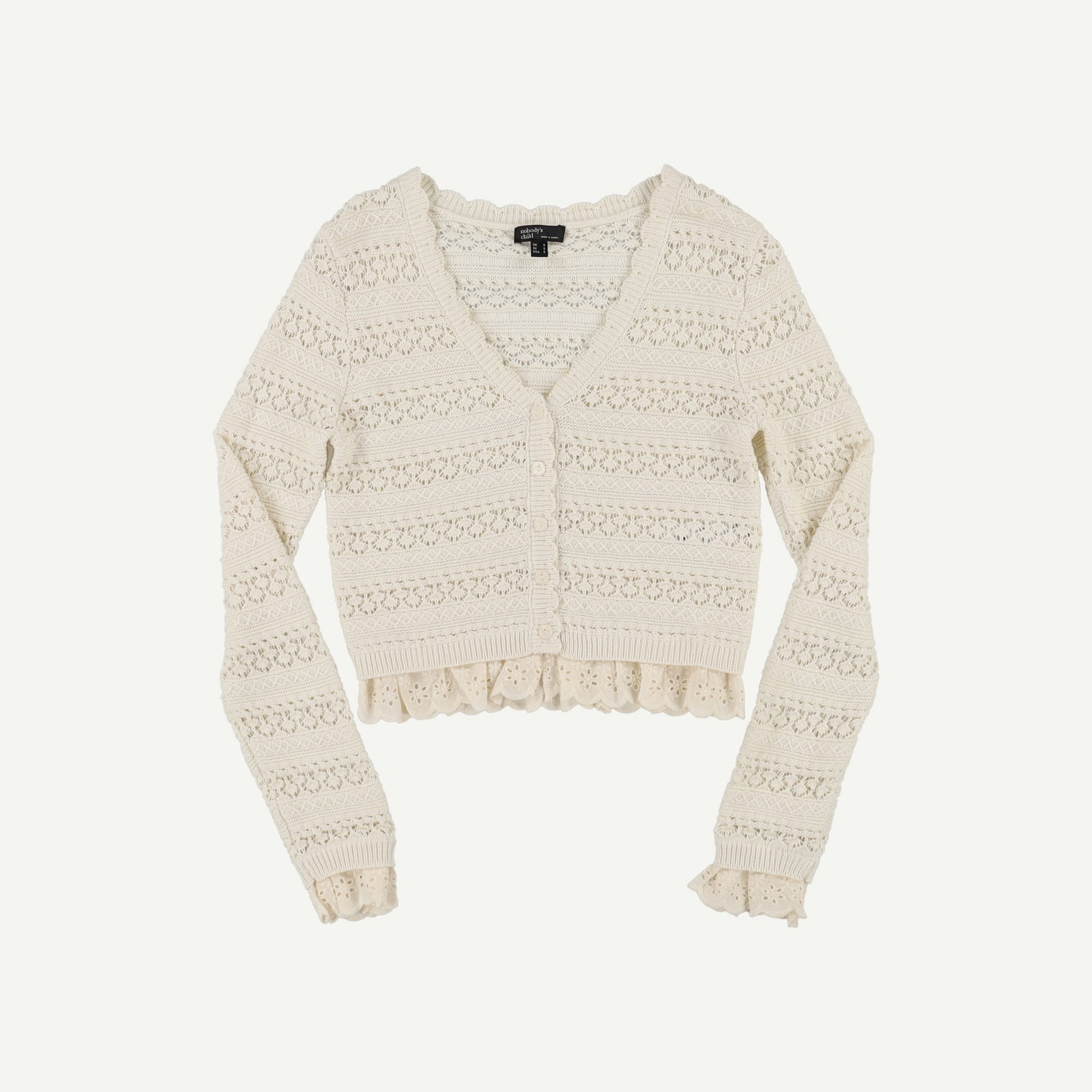 Nobody's Child Womens Cream Cotton V-Neck Long sleeved Women Cardigan Size S