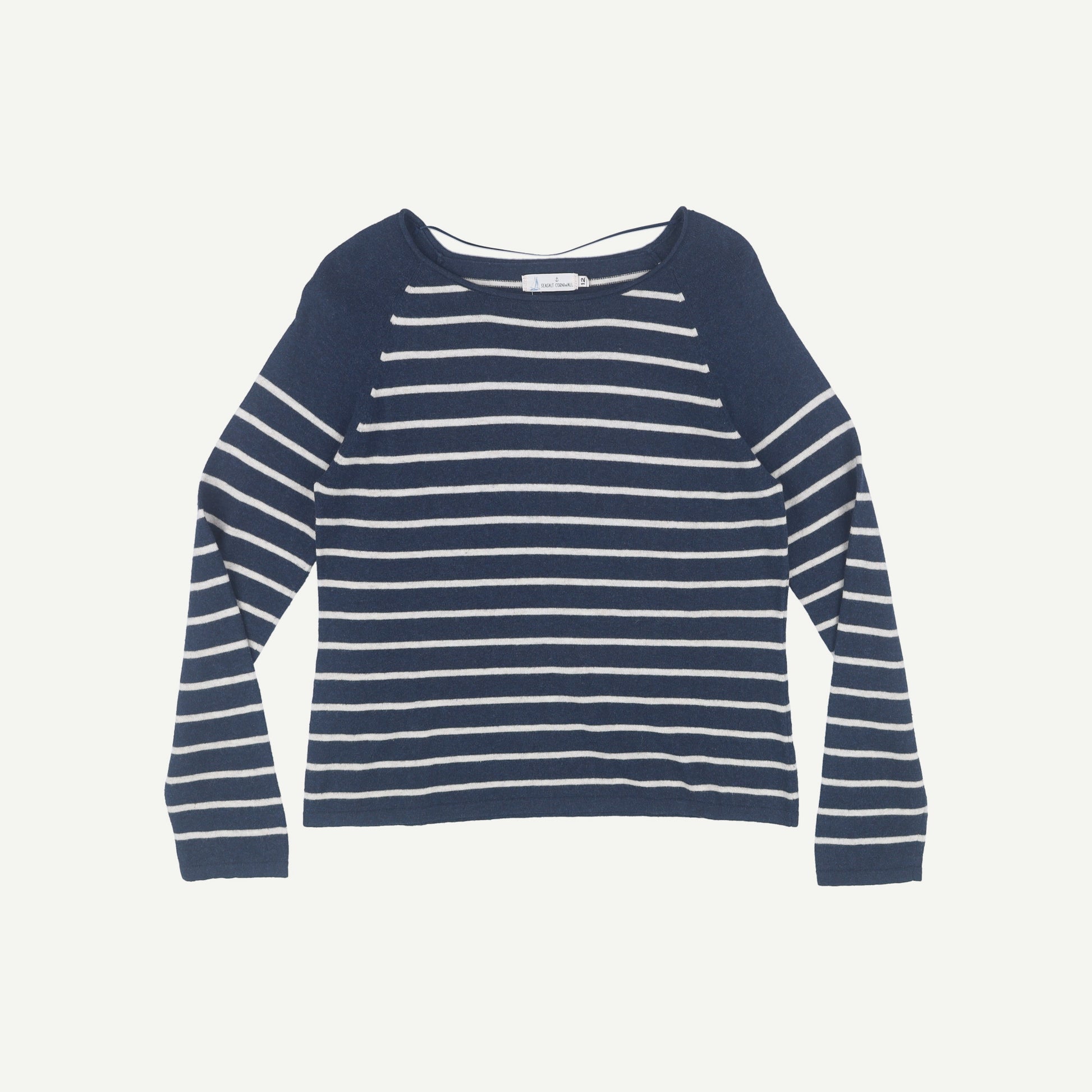Seasalt Cornwall Womens Blue Cotton Striped Long sleeved Jumper Size 12