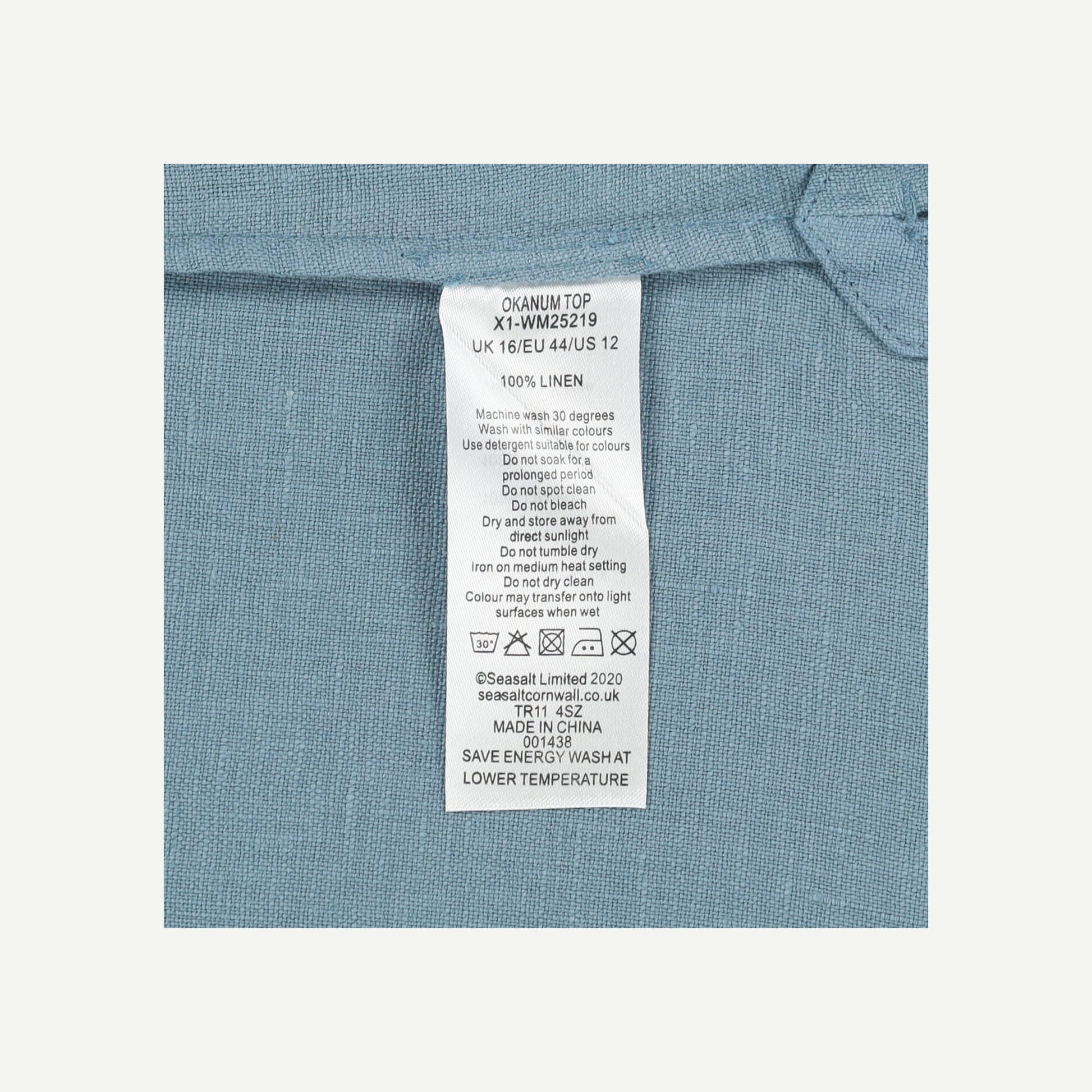 Seasalt Womens Blue Linen Short sleeved Top Size 16