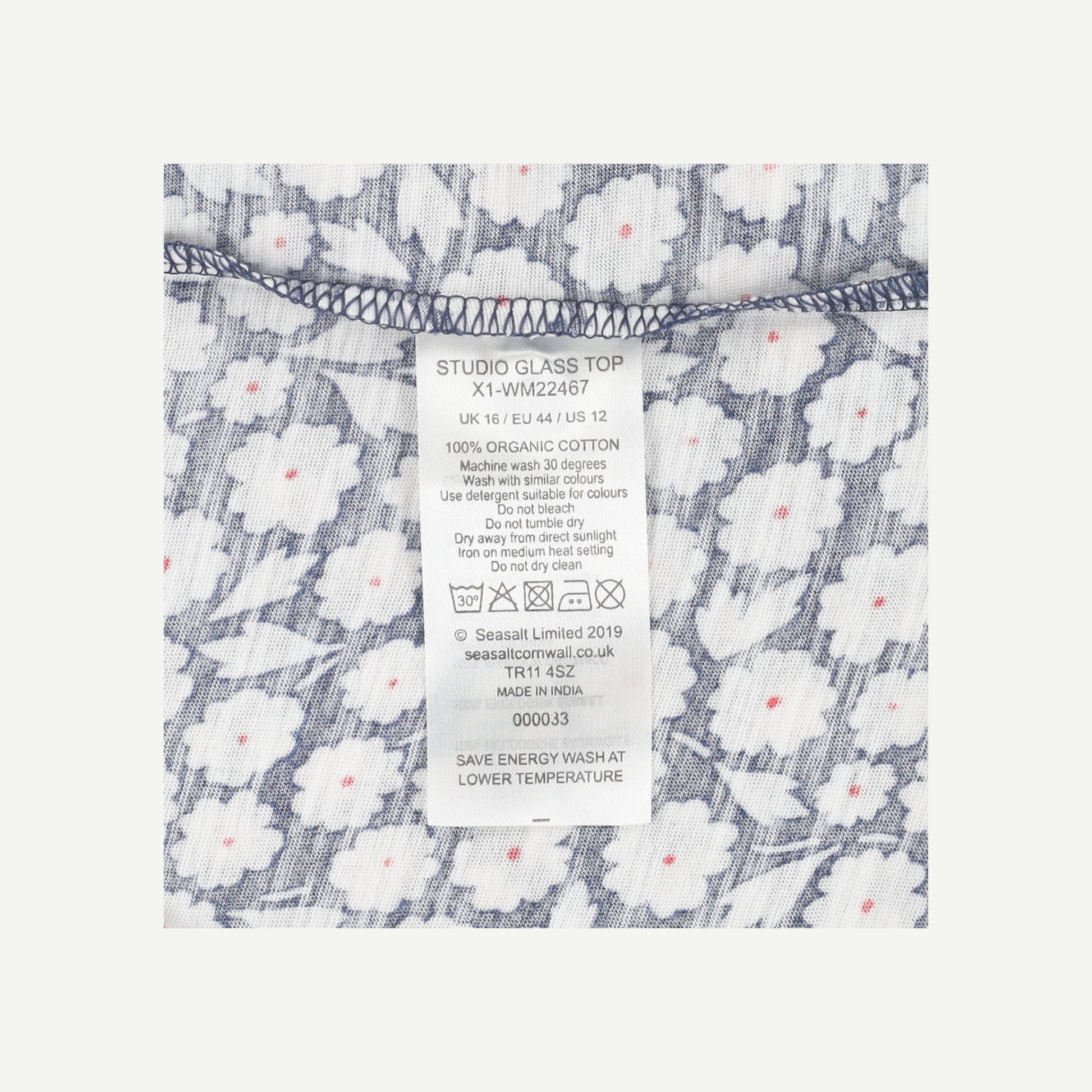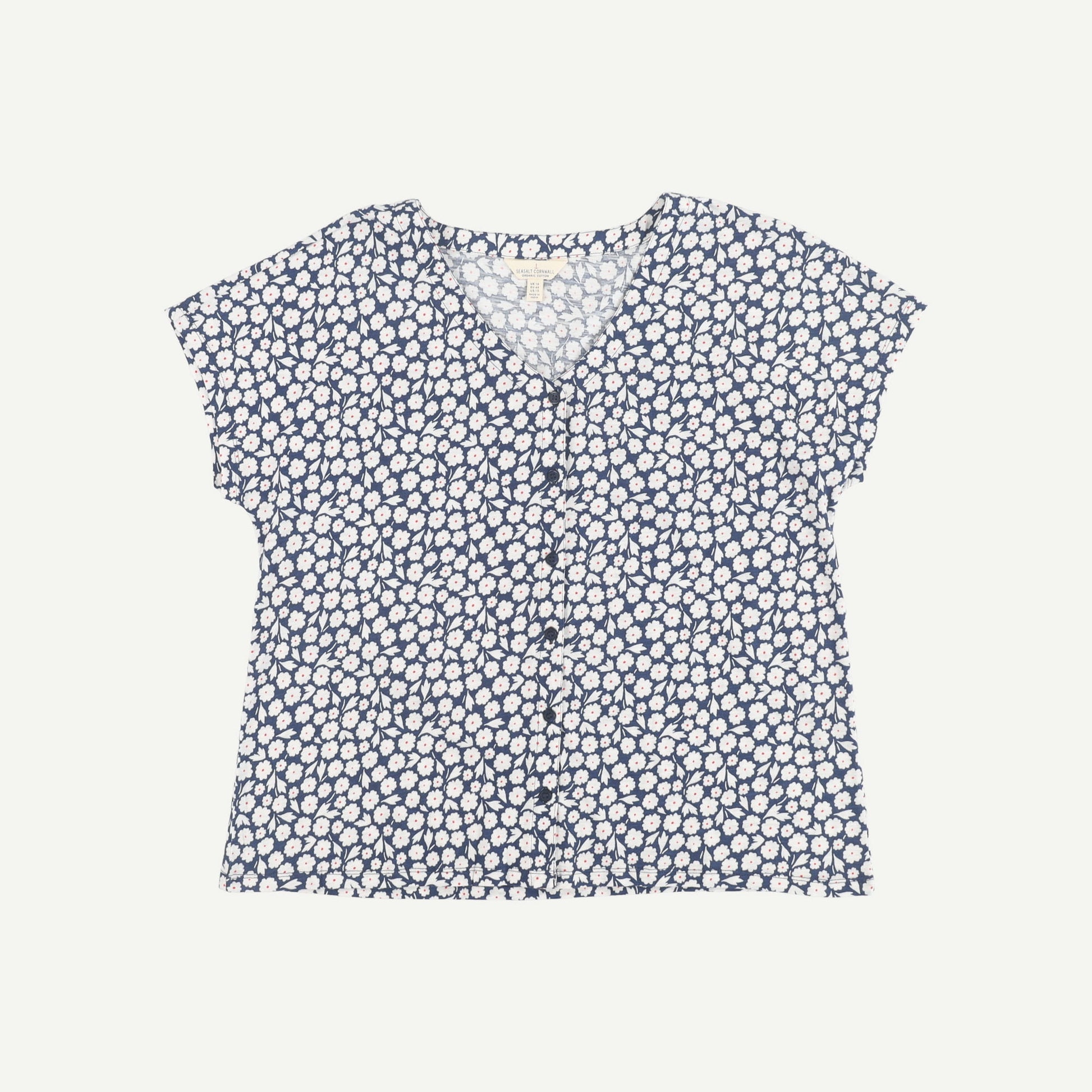 Seasalt Cornwall Womens Blue Organic Cotton Floral Short sleeved Top Size 16