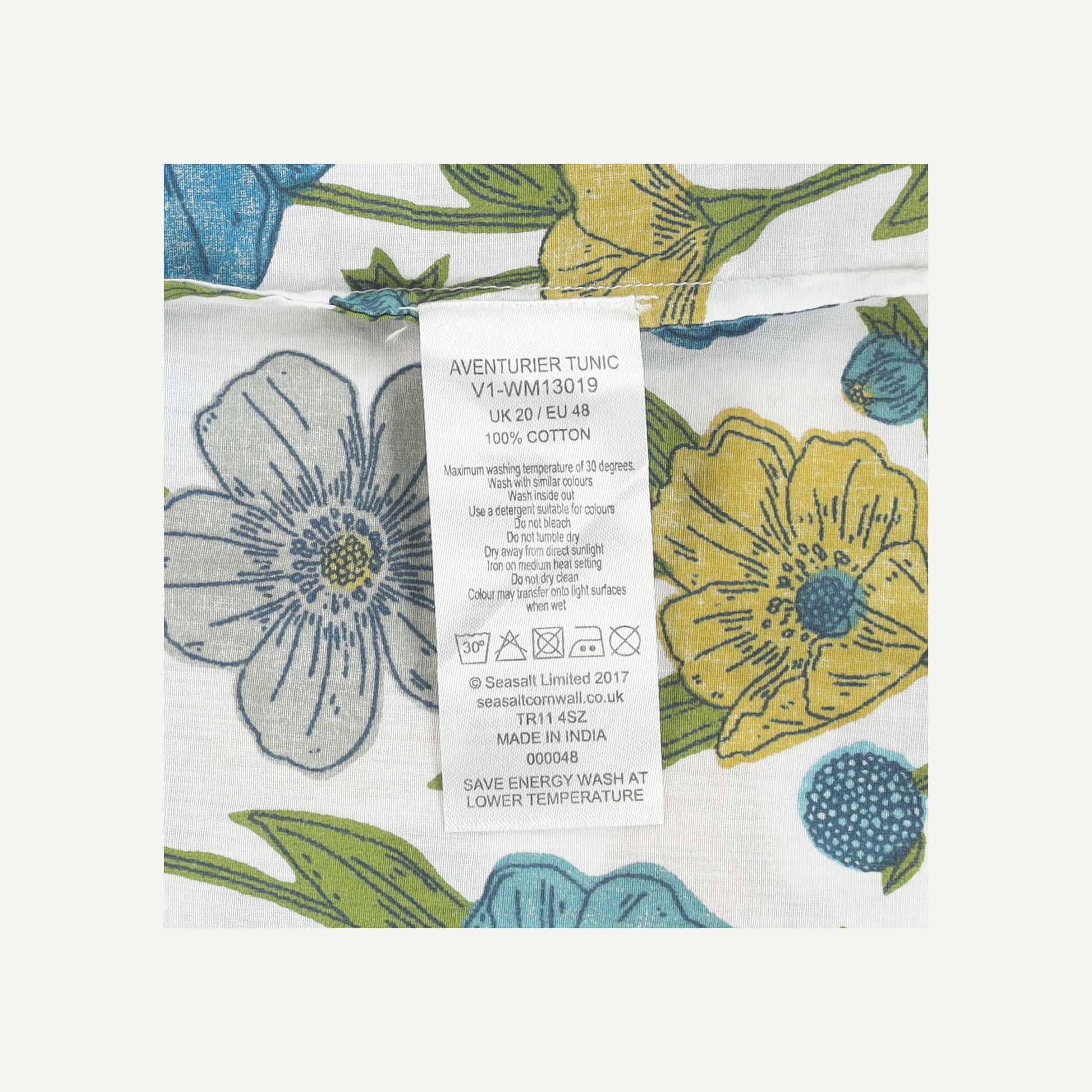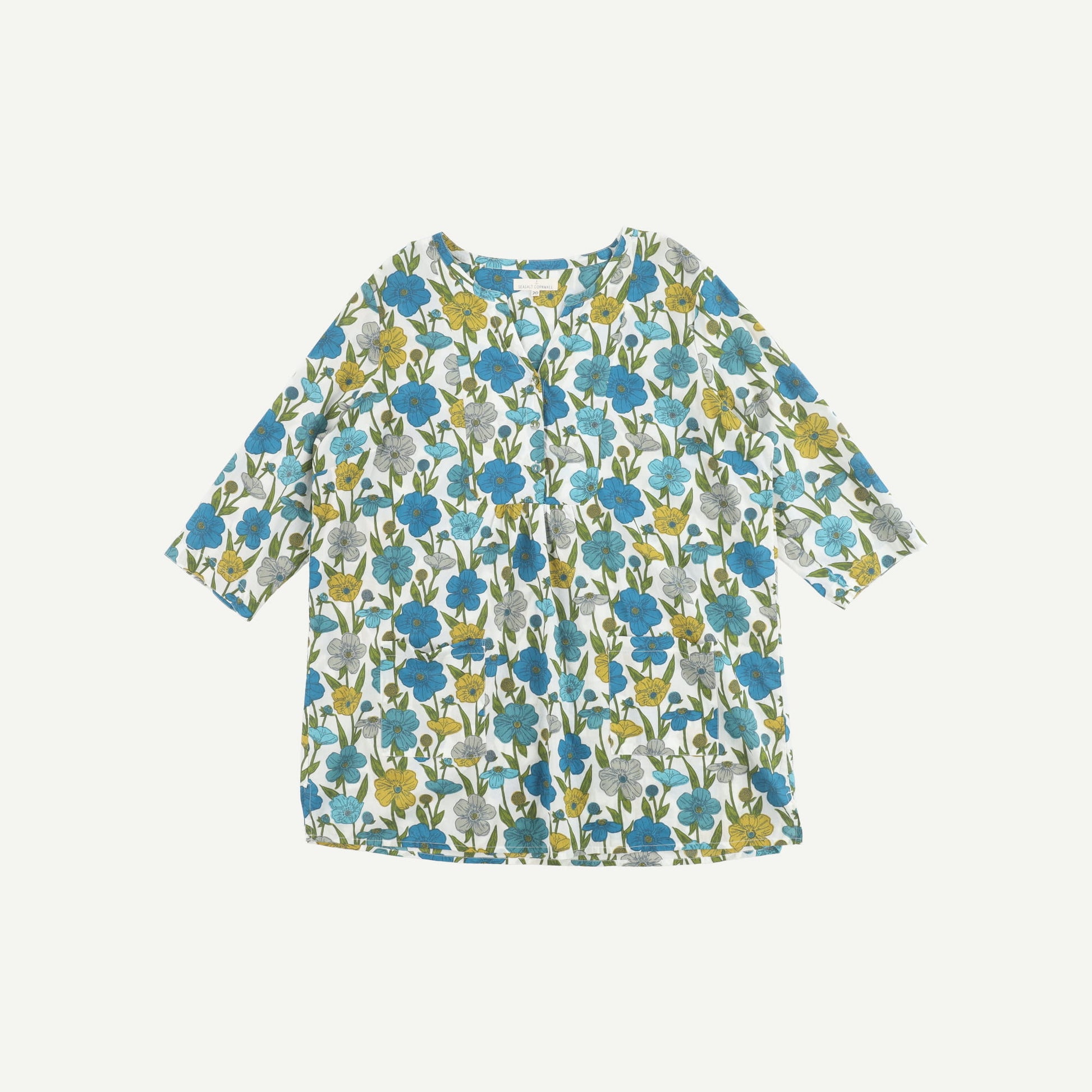 Seasalt Cornwall Womens Blue Cotton Floral Mid sleeved Tunic Top Size 20