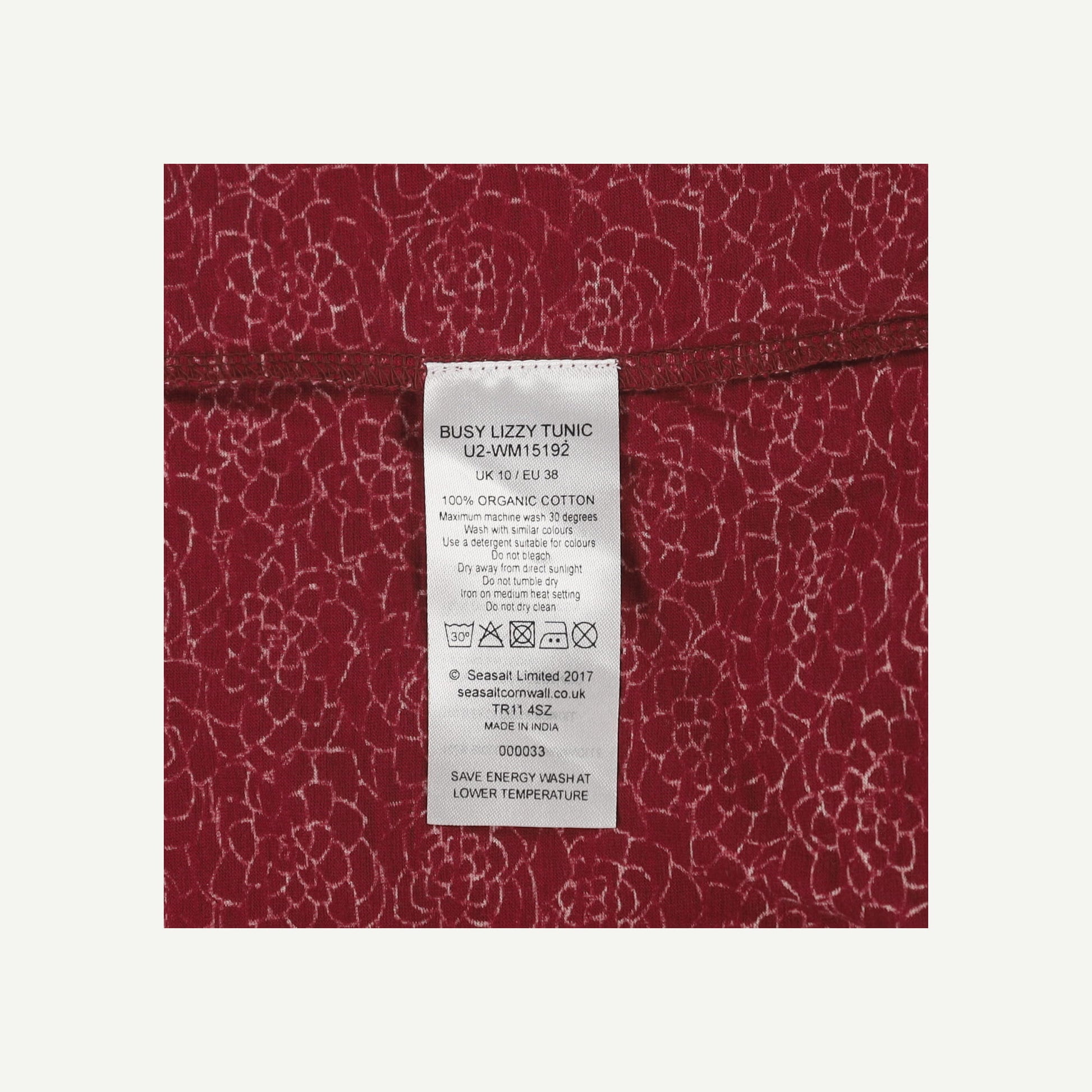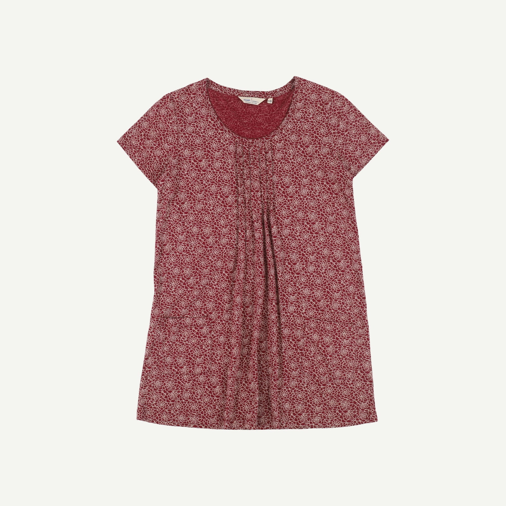 Seasalt Cornwall Womens Burgundy Organic Cotton Floral Short sleeved Tunic Top Size 10