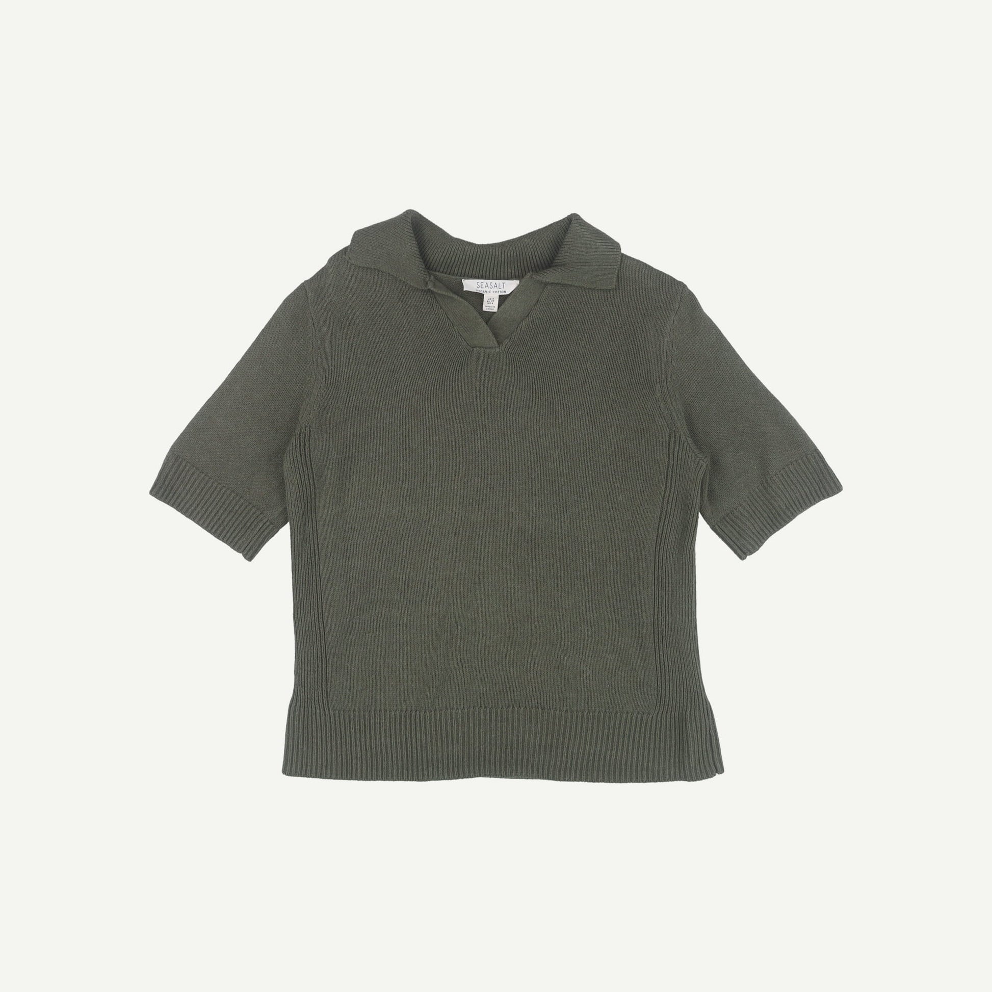 Seasalt Cornwall Womens Green Organic Cotton Short sleeved Jumper Size 8