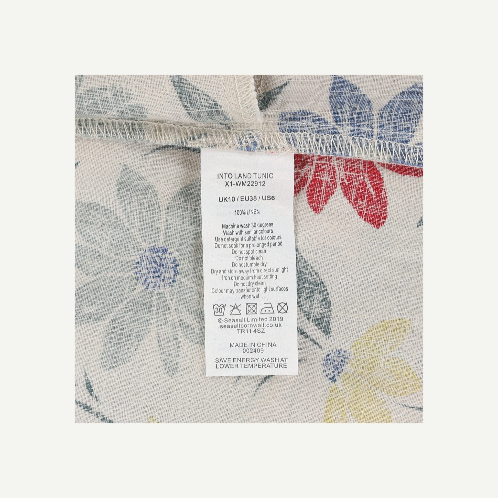Seasalt Cornwall Womens Multi Coloured Linen Floral Mid sleeved Tunic Top Size 10
