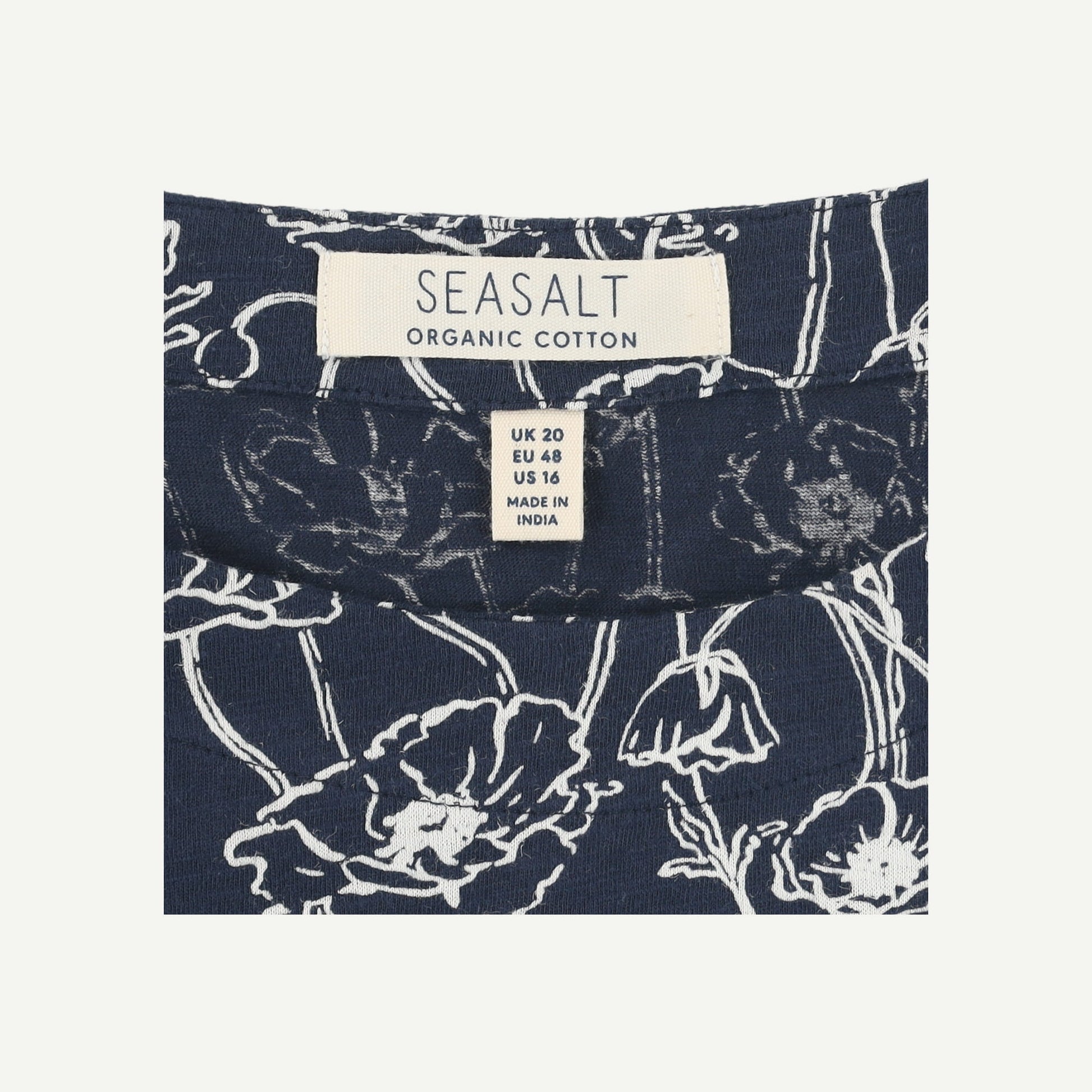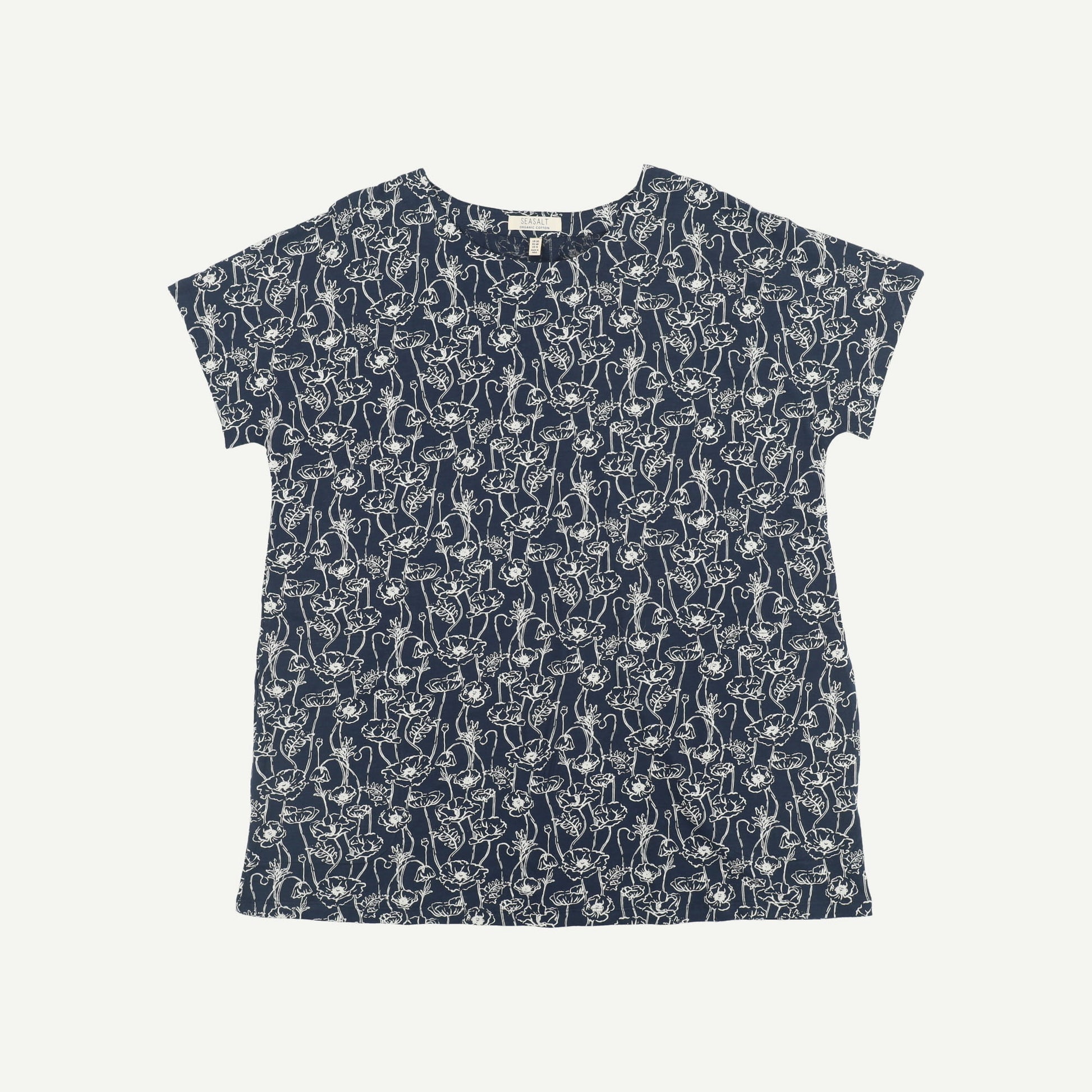 Seasalt Womens Navy Organic Cotton Floral Short sleeved Top Size 20