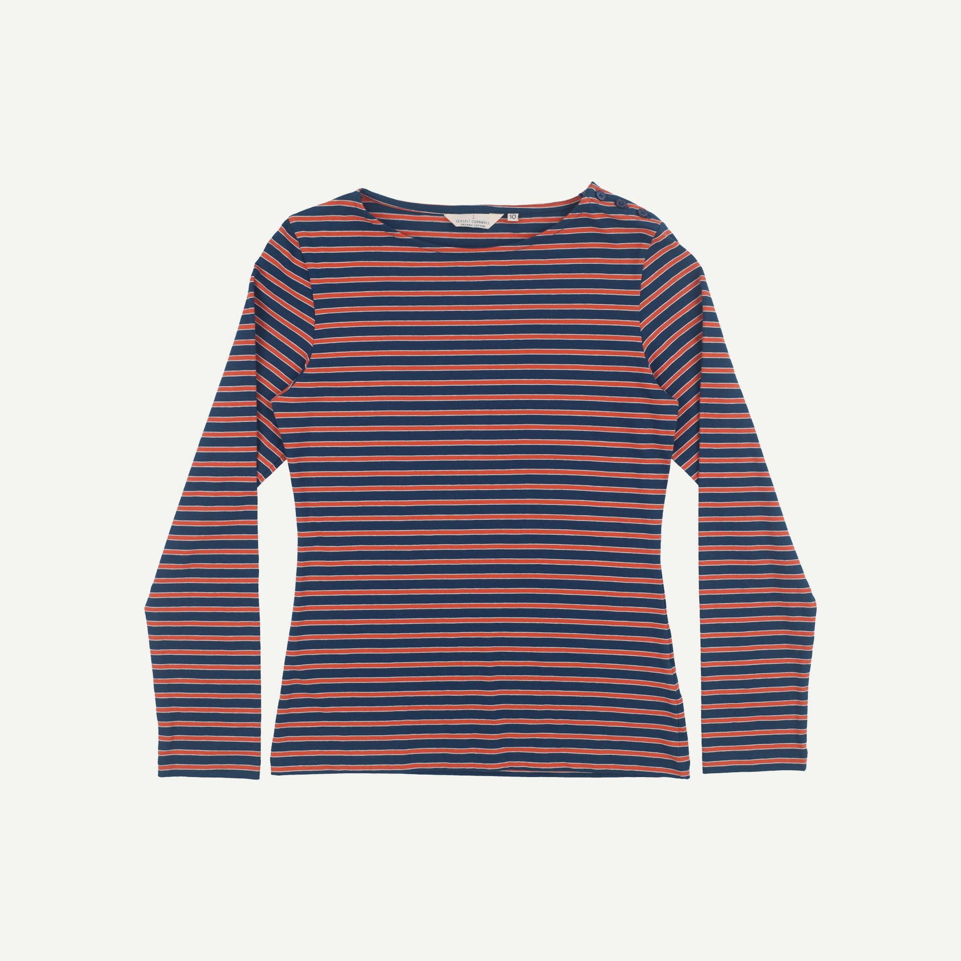 Seasalt Cornwall Womens Navy Organic Cotton Striped Long sleeved Top Size 10