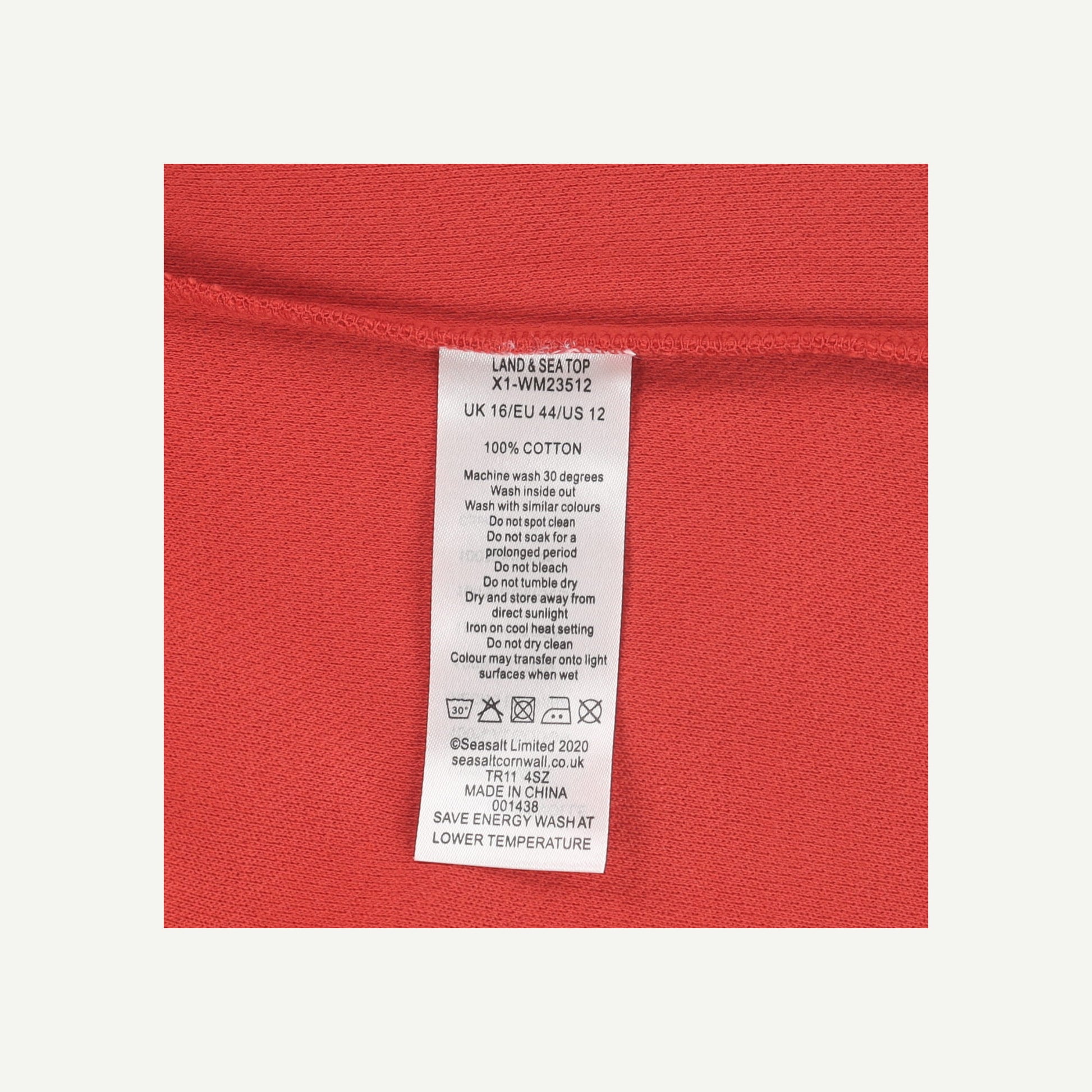 Seasalt Cornwall Womens Red Cotton Short sleeved Top Size 16