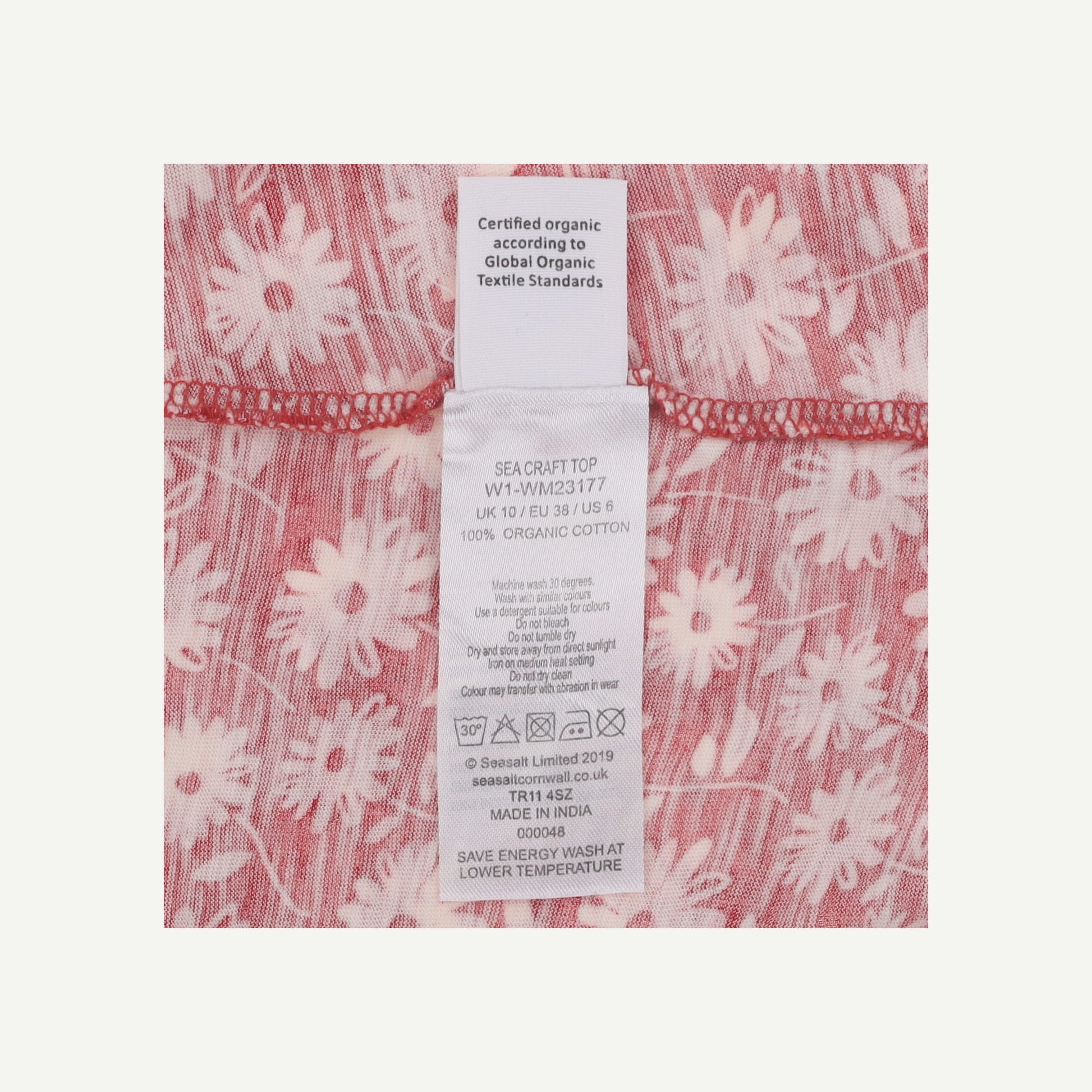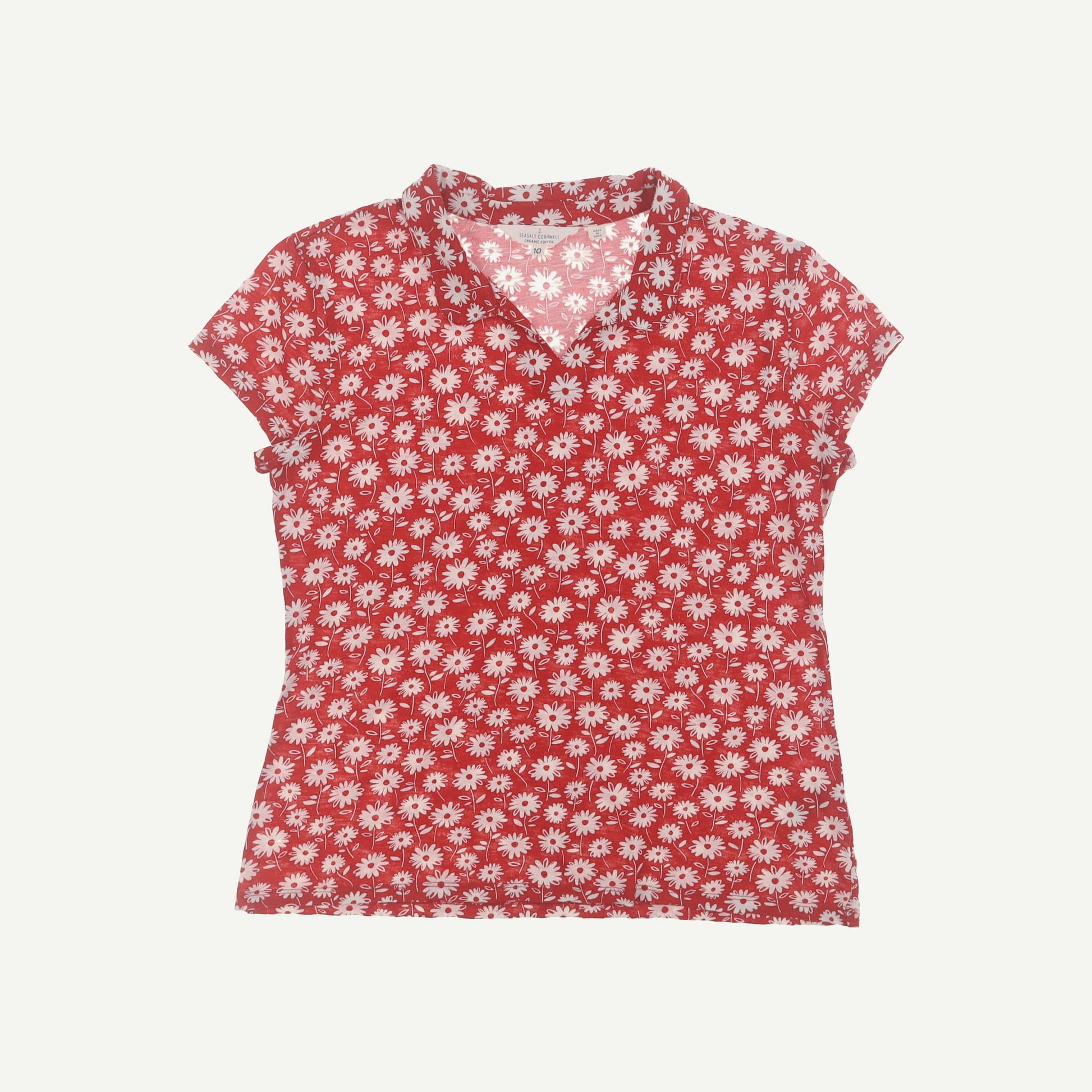 Seasalt Cornwall Womens Red Organic Cotton Floral Short sleeved Top Size 10