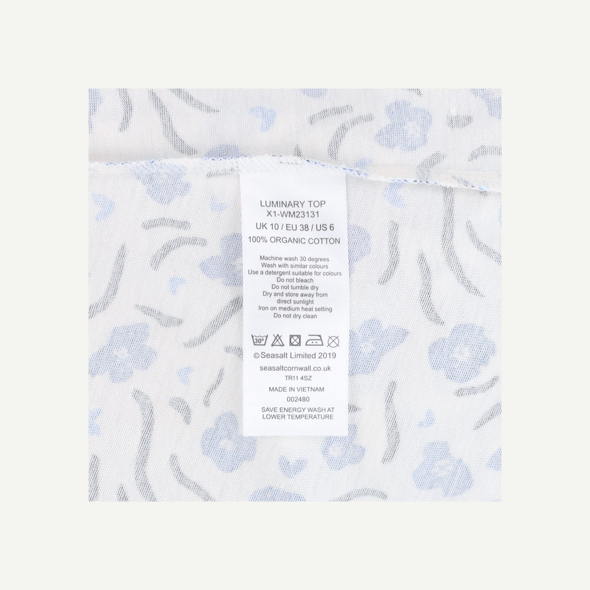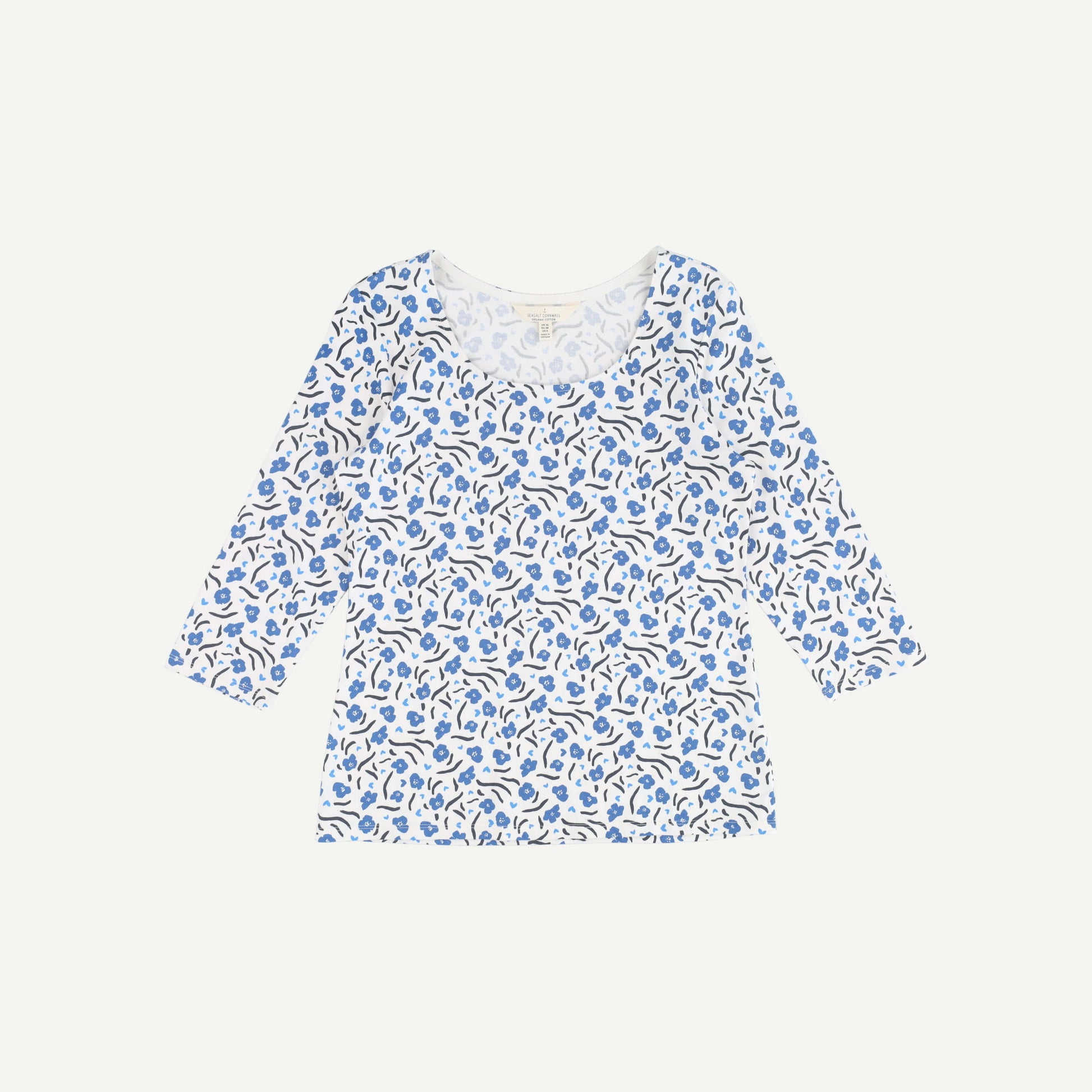 Seasalt Cornwall Womens White Organic Cotton Floral Long sleeved Top Size 10